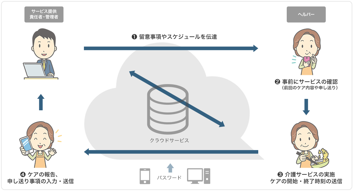 情報共有は、業務効率だけでなく、訪問介護のケア向上、利用者の安全・安心につながります。